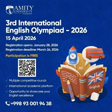 DetailAmity University in Tashkent is organising 1st International English Olympiad for young people (age 15+) enrolled in lyceums, colleges and schools.