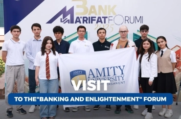 DetailMembers of the Reading Club of Amity University in Tashkent took part in the forum "Banking and Enlightenment: Towards a Strong Economy with a Knowledgeable Society," held on September 24-26 at the Alisher Navoi National Library of Uzbekistan in cooperation with the Central Bank of the Republic of Uzbekistan.