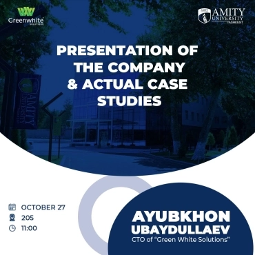 BatafsilThe representatives of Greenwhite solutions held the company presentation and practical workshop. The CTO of the company Ayubkhon Ubaydullaev shared his knowledge and road from intern to the CTO. If you interested working in that send your CV to the email address: hr@greenwhite.uz