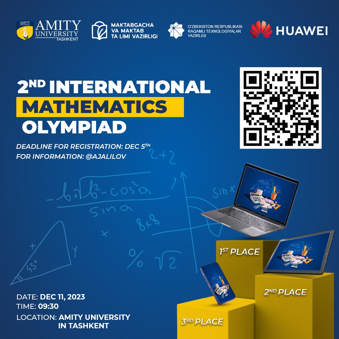 Toshkent shahridagi Amiti universitetida litsey, kollej va maktablarda tahsil olayotgan yoshlar (15 yoshdan katta) o‘rtasida II Xalqaro olimpiada tashkil etiladi.